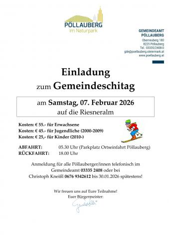 Einladung zum Gemeindeschitag am Samstag, 07. Februar 2026 auf die Riesneralm